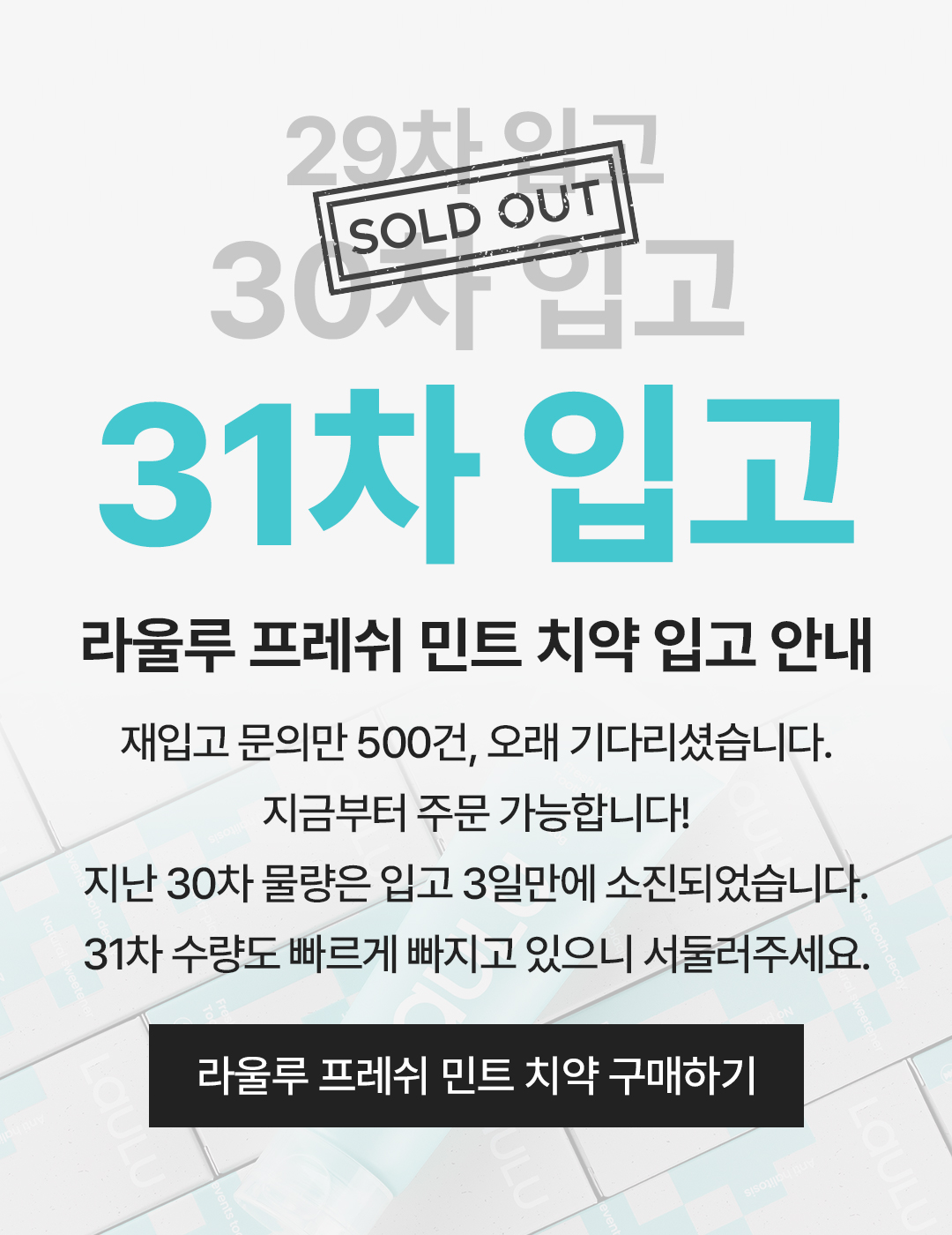 라울루 가글 받아서 사용해 보고 역시 라울루! 했어요. 일단 성분이 안심하고 온 가족이 사용할 수 있어서 믿고 주문합니다. 가글이 순하고 부드러운데 입 속이 상쾌해요. 곧 명절이라 부모님 드리려고 두 세트 주문했습니다.